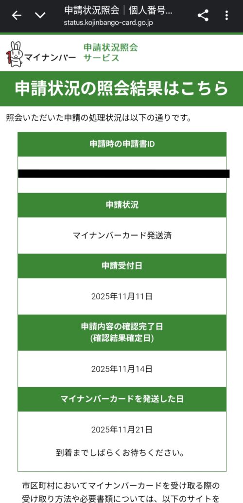 マイナンバーの申請状況を確認できる申請書IDがメールで送られてきました。