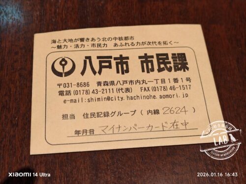 今回のケースのように、本籍地(八戸市)以外で申請・受け取りをする場合、役所間での書類持ち回りが発生します。カードは本人が受け取るまで厳重に封印されており、窓口で初めて開封されます。