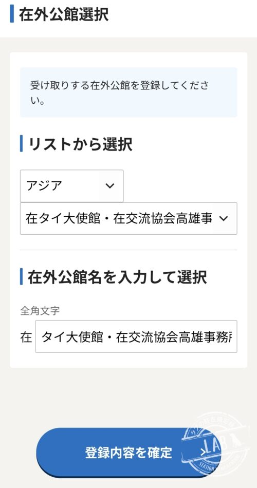 自動選択されますが、台湾は大使館が無いためタイの大使館経由でパスポートを発行します。