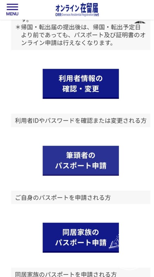 日本居住者と手順は異なり、オンライン在留届(ORRネット)経由で申請を行います。