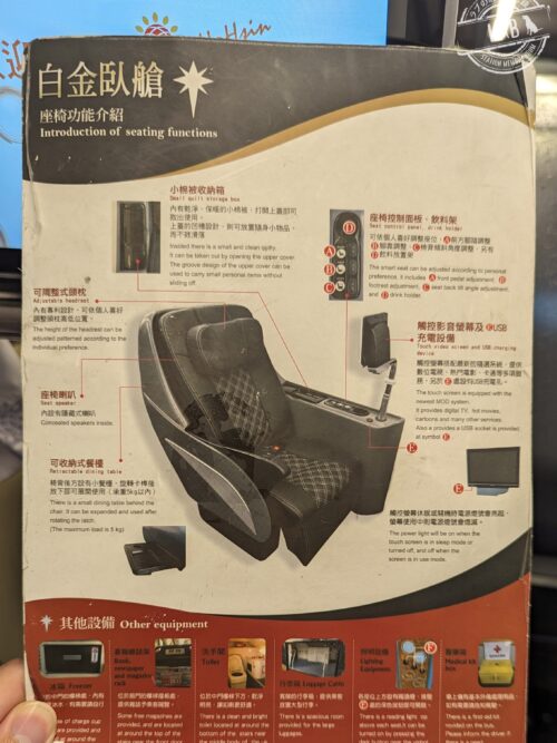 座席はマッサージチェアのように大きく、飛行機で見かけるヘッドレストが立つタイプ (写真参照)。